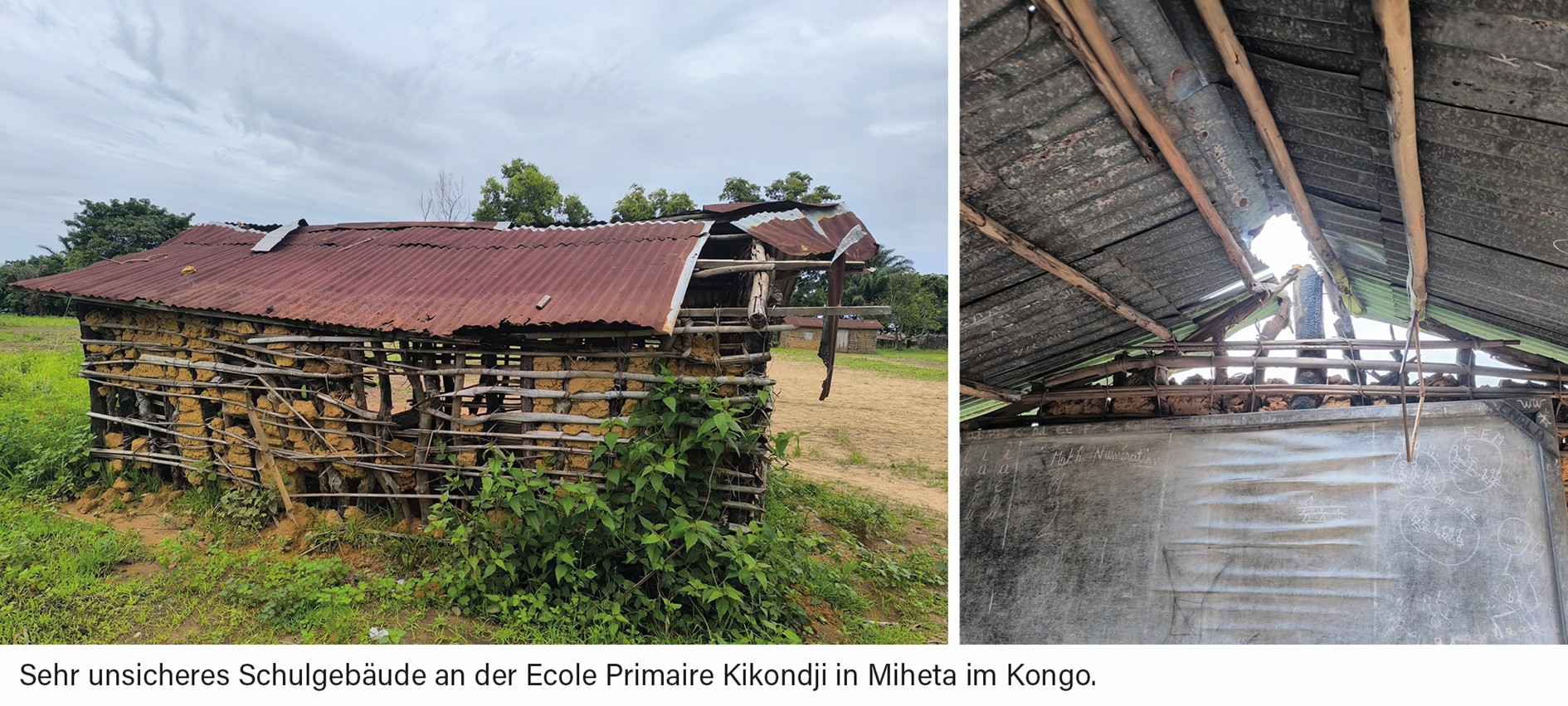 Auch der Bau eines Schulgebäudes für Kinder der 1. Klasse von der Grundschule Kikondji, in Miheta (Kongo), erlaubt angesichts der Baufälligkeit des Bestands kein Zögern. Nun kann Pater Dieudonné auf einem Fundament von 8.000 Euro ein ordentliches Gebäude errichten, die wir ihm aus Ihren Spenden bereitgestellt haben.
